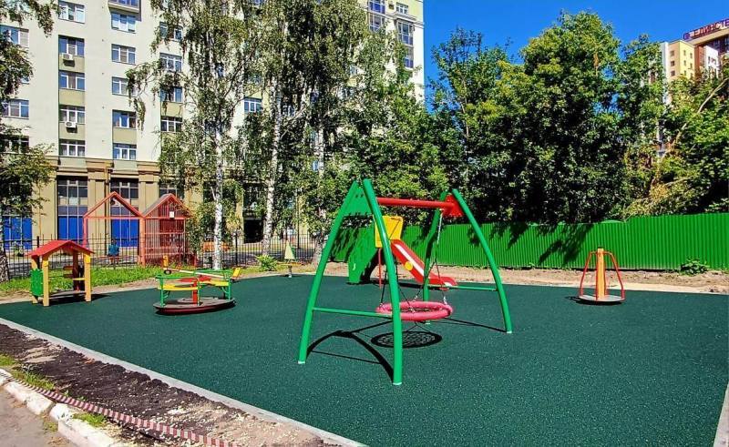 Установка небольшой детской площадки с покрытием возле жилого дома 2024